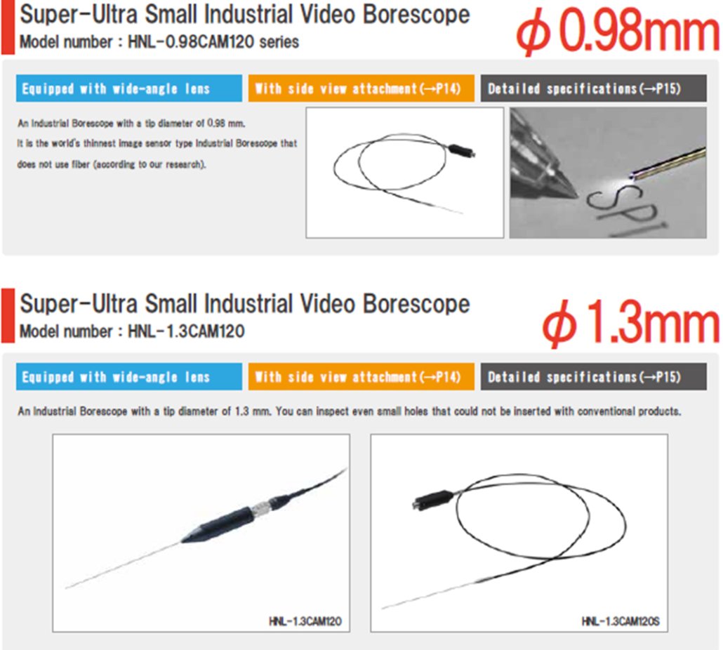 | Outer diameter (mm) | Ø0.98 | Ø1.3 | Ø2.9 | Ø4 | Ø4.6 | |